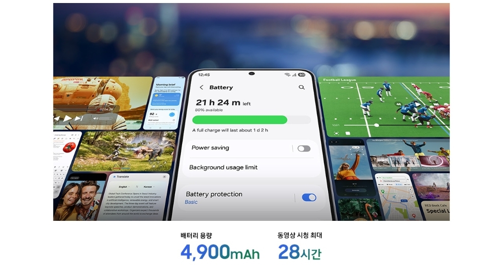 또한, FE(Fan Edition) 모델 최초로 45W의 고속 충전을 지원해 30분 충전 시 약 64%까지 충전할 수 있으며, 약 1시간이면 완충이 가능해 충전 편의성도 크게 개선되었습니다.