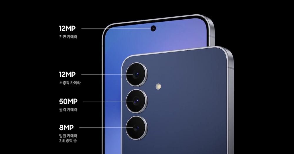 갤럭시 S25 FE의 카메라는 OIS가 포함된 5,000만 화소의 메인 카메라, 1,200만 화소의 광각 카메라, OIS가 포함된 800만 화소의 망원 카메라로 구성된 트리플 렌즈 구성입니다. 전반적인 카메라 구성은 전작과 동일하지만 전면 카메라의 해상도가 1,000만 화소에서 상향된 점이 유일한 변화점입니다.