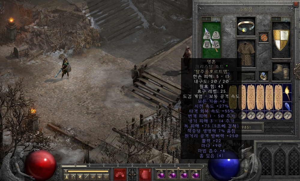 ‘영혼’은 4소켓 검 또는 방패에 제작할 수 있는 룬워드로, 주로 마법사 계열의 캐릭터들이 사용하는 핵심 아이템입니다.