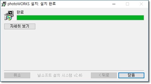 잠시 기다리면 설치가 완료되며, [닫음] 버튼을 누르면 모든 과정이 끝납니다.